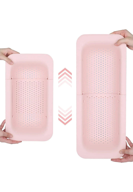 ISP Collapsible Sink Colanders and Stainers Basket Extendable Plastic Fruit Vegetable Strainer Drainer Basket for Kitchen ( 2pcs, Gray & Pink )