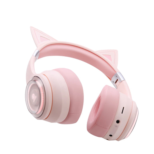 ISP LED Cat Ear Headphone Bluetooth 5.3 - Gaming Headset for PC PS5 Switch Xbox, 2.4G/Wireless/Wired, Attachable Gaming Microphone, Customizable Lighting and Effect. (800Mah)
