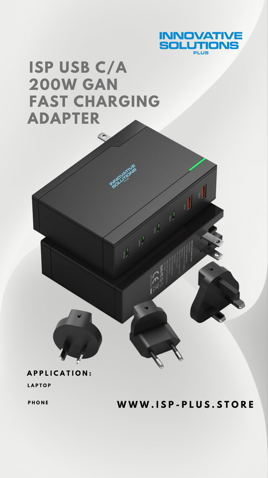 ISP GaN 200W Fast Charging Adapter with LED (USB C/A)