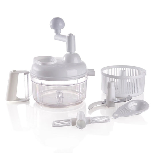 INNOVATIVE 9-in-1 Manual Food Chopper: Vegetable Chopper Hand Food Processor, Mixer, Blender, Whipper, Egg White Separator, Mincer, Grinder, Dicer with Clear Container BPA Free - (1200ml, White)