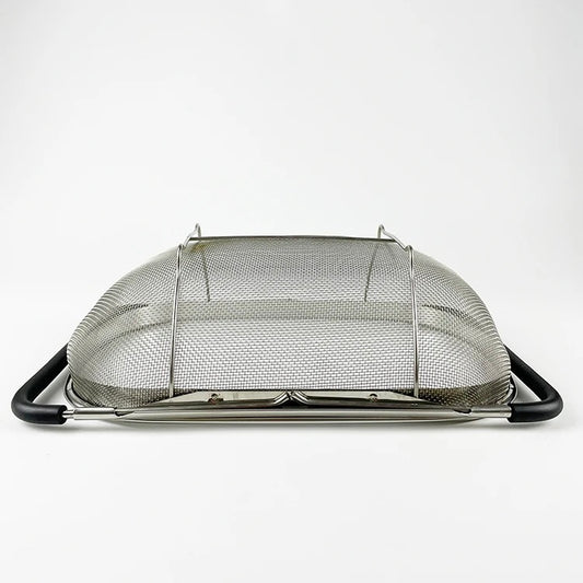 INNOVATIVE 6 Quart Stainless Steel Over The Sink Oval Colander With Expandable Rubber Non Slip Grip Handle, Fine Mesh Drainer & Strainer Basket Kitchen Sink for Rinsing, Draining, Storage Fine Mesh, Large Kitchen Gadget Tool, Expandable (Large)