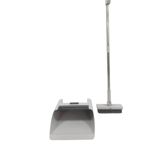 INNOVATIVE Broom,Brush and Dustpan Set,Long Handle Broom Set with 90 °Degrees Foldable Space Saving Design for Office, Salons, Hotels, Home Kitchen Lobby Floor Use, Dustpan and Broom Set (3-in-1, Gray)