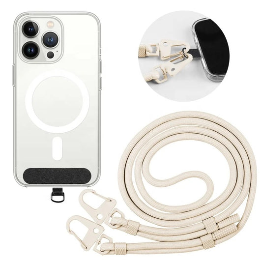 Innovative Cell Phone Lanyard - Convenient and Comfortable iPhone Lanyard - Easy to Use Neck Phone Holder [Black Patch] - Adjustable Length Phone Strap Crossbody - Fits All Mobile Phones (Beige)