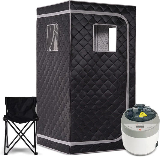 ISP Portable Steam Sauna, Full Size Personal Sauna for Home, One Person Relaxation, with 4L & 1600W Steam Generator, Remote Control, Timer, Portable Sauna Chair (33.85" x 33.85" x 65.74", Black