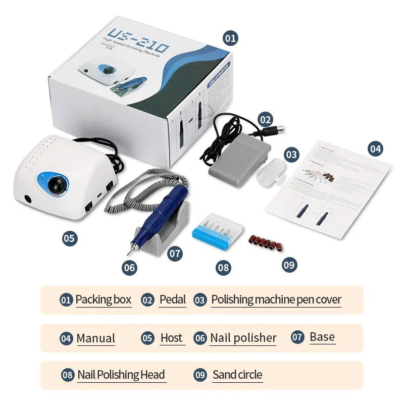 Achieve salon-quality nails with the 35000RPM Nail Drill Machine. This powerful 65w manicure and pedicure device features a strong 210 105L motor for high-speed, precision nail grooming. The included nail drill bit set and gel polishing tool ensure a perfect, professional finish every time. Experience the difference of expert-level nail care at home.