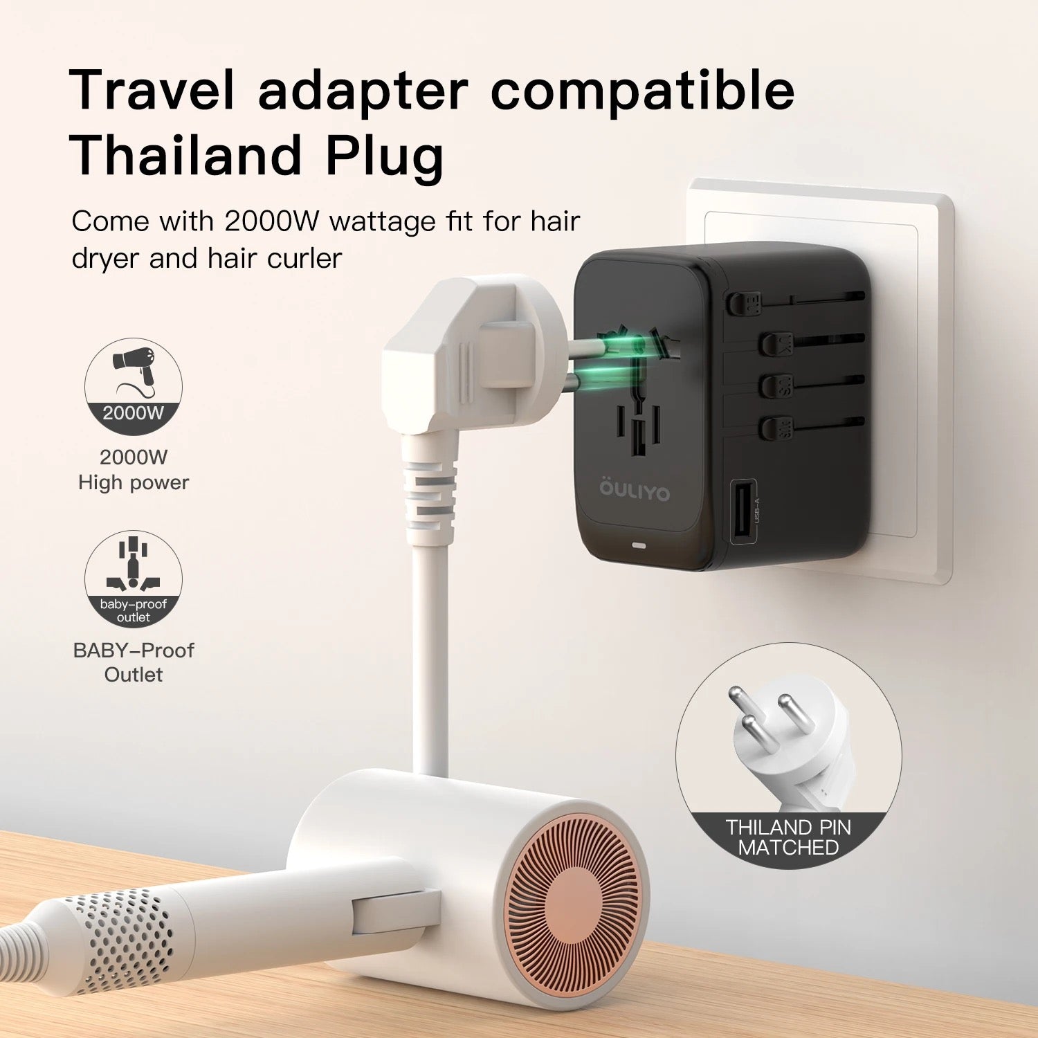 Travel with ease and convenience using the ISP Universal Travel Adapter! This all-in-one adaptor features GaN technology with 4 USB C and 1 USB A ports for fast charging, making it perfect for use in Europe, USA, UK, Australia, and Ireland. With its compact size and universal compatibility, you'll never have to worry about running out of power on your travels again!