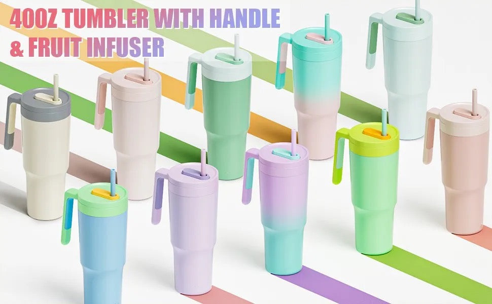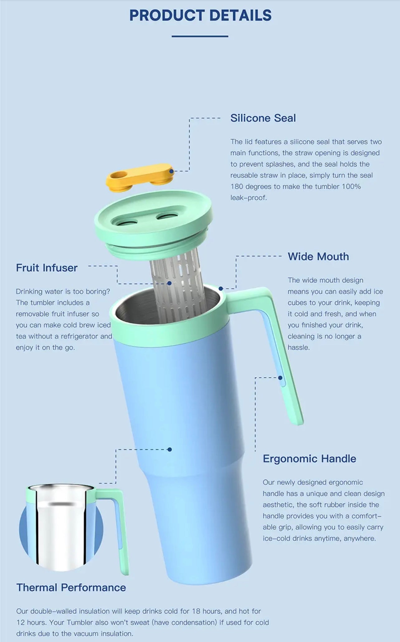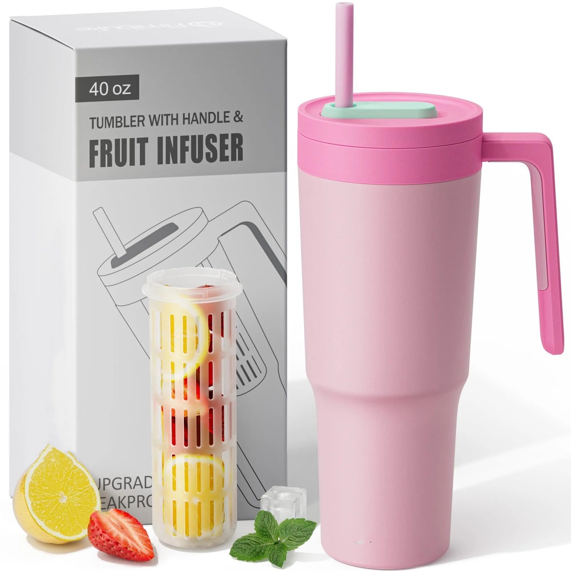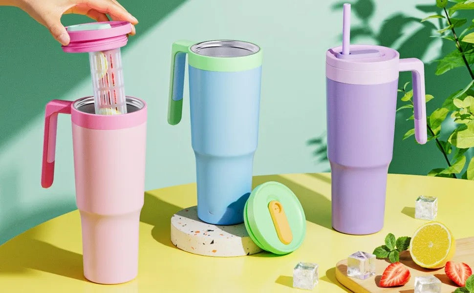 40oz stainless steel insulated vacuum tumbler with straw and fruit infuser filter with sealed lid