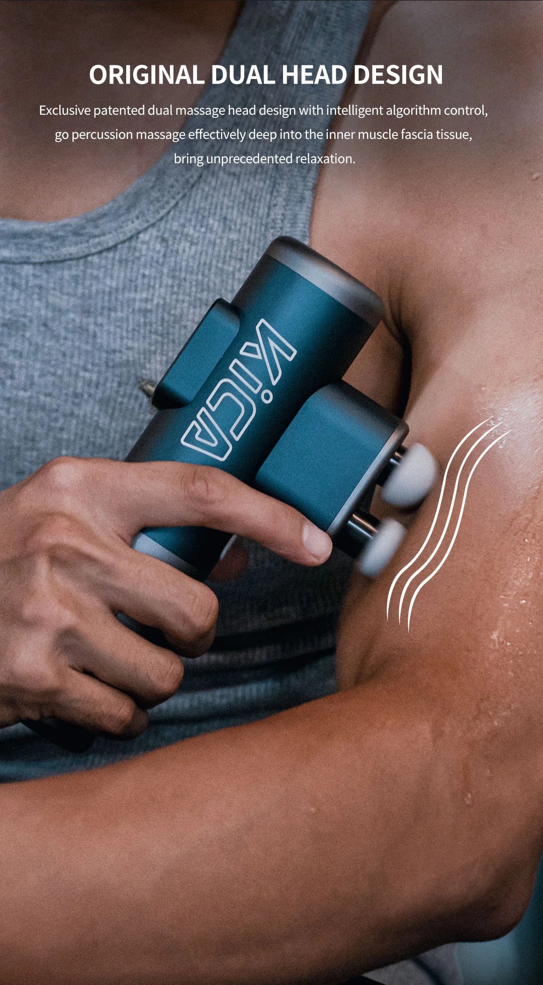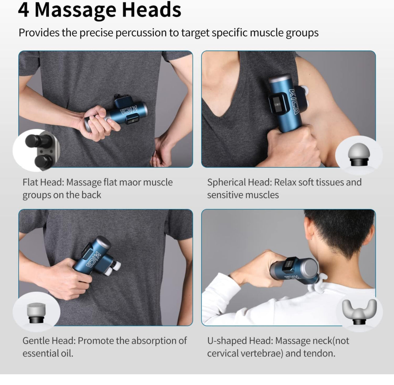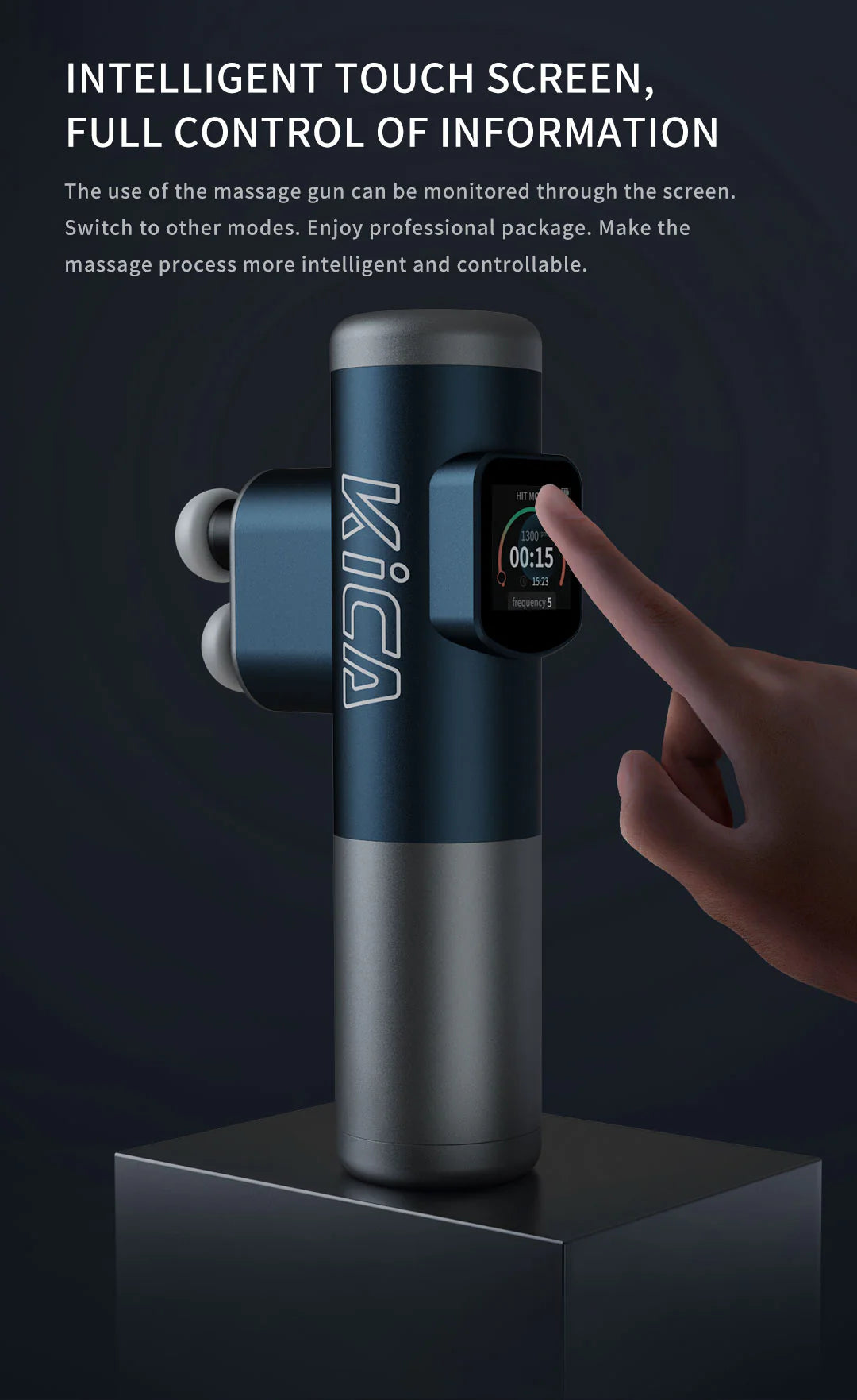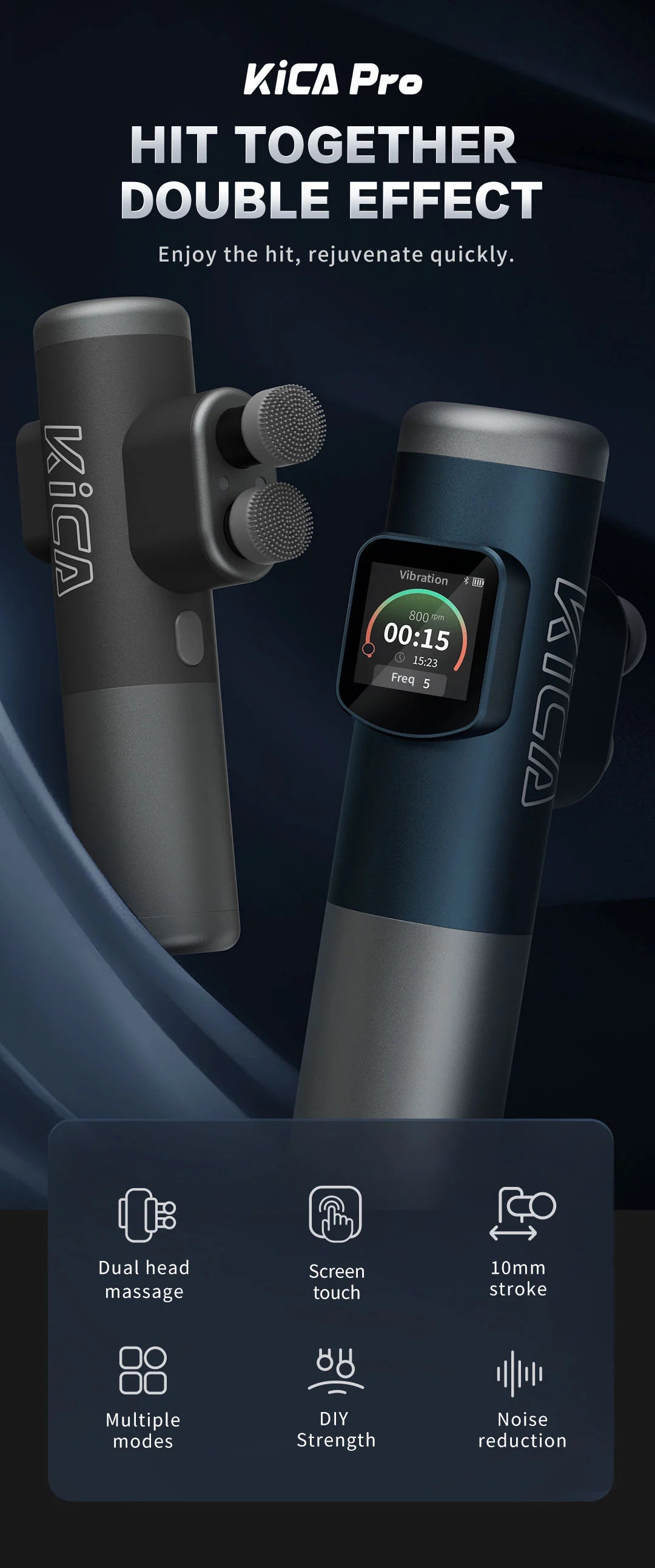 Kica Pro Double-Head Mini Massage Gun with LED Display Touchscreen, Handheld Deep Tissue Percussion Muscle Massage Gun for Therapy and Relaxation, 6 Massage Heads 10 Speeds Power Brushless Motor