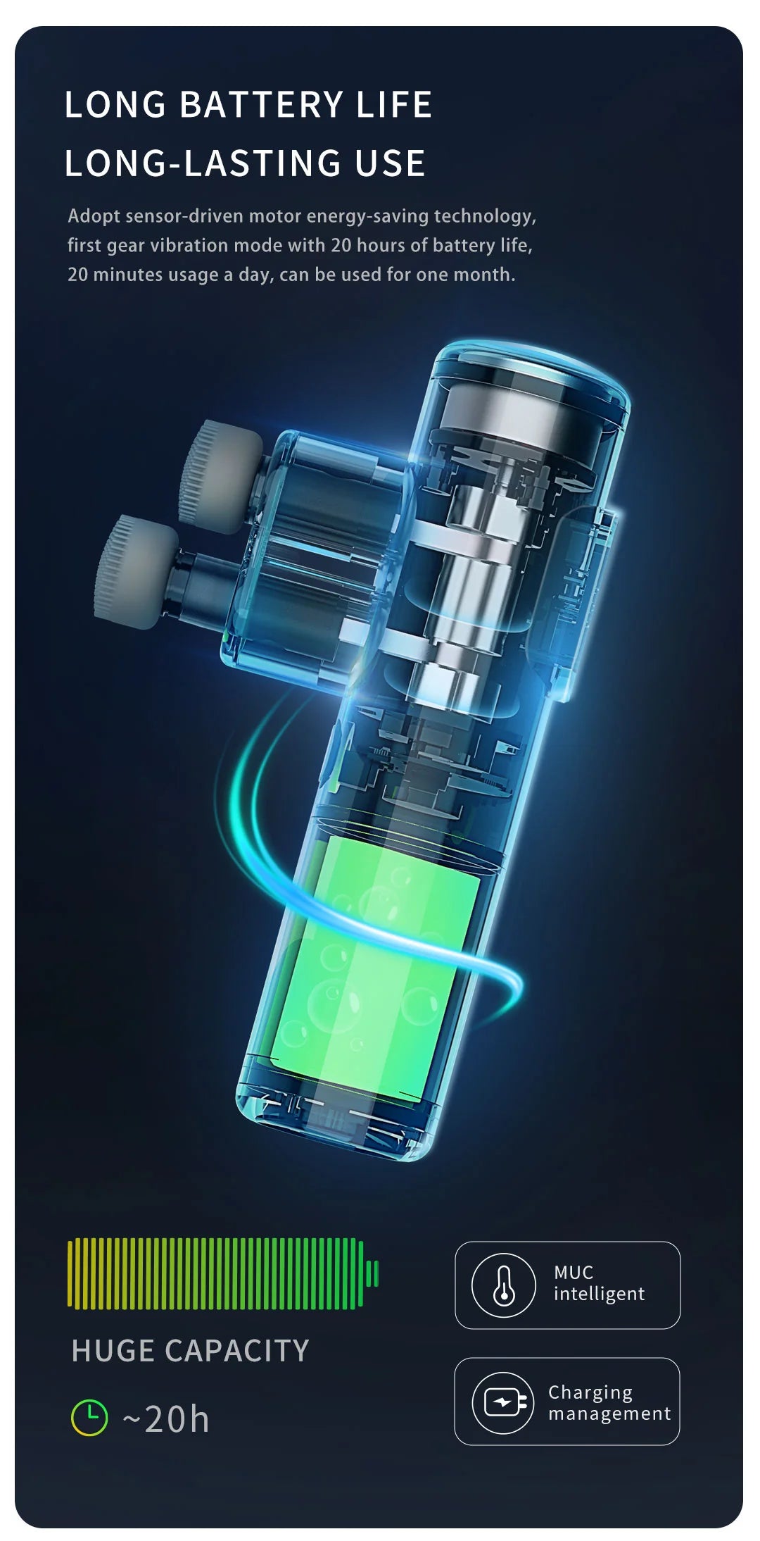 - Double-Head Design: Features a double-head design for precise and targeted deep tissue percussion massage.