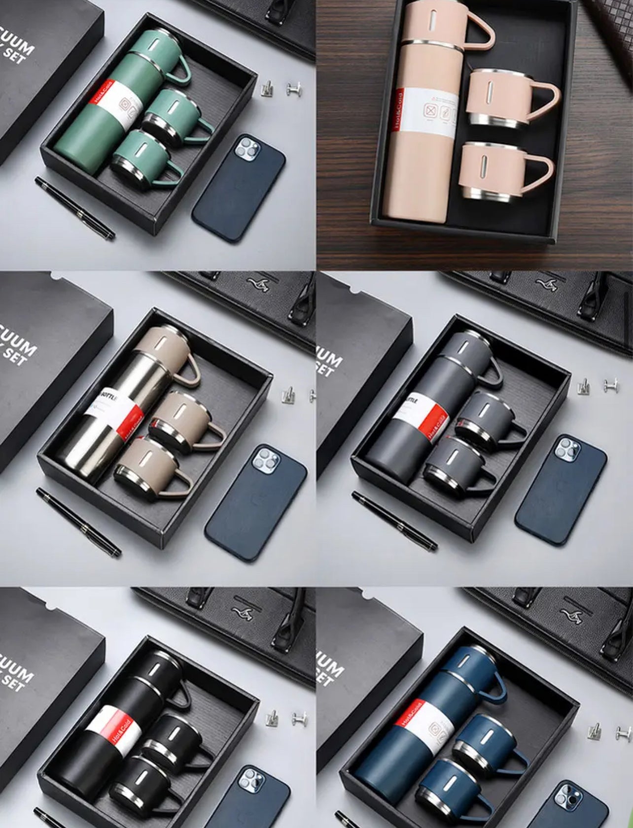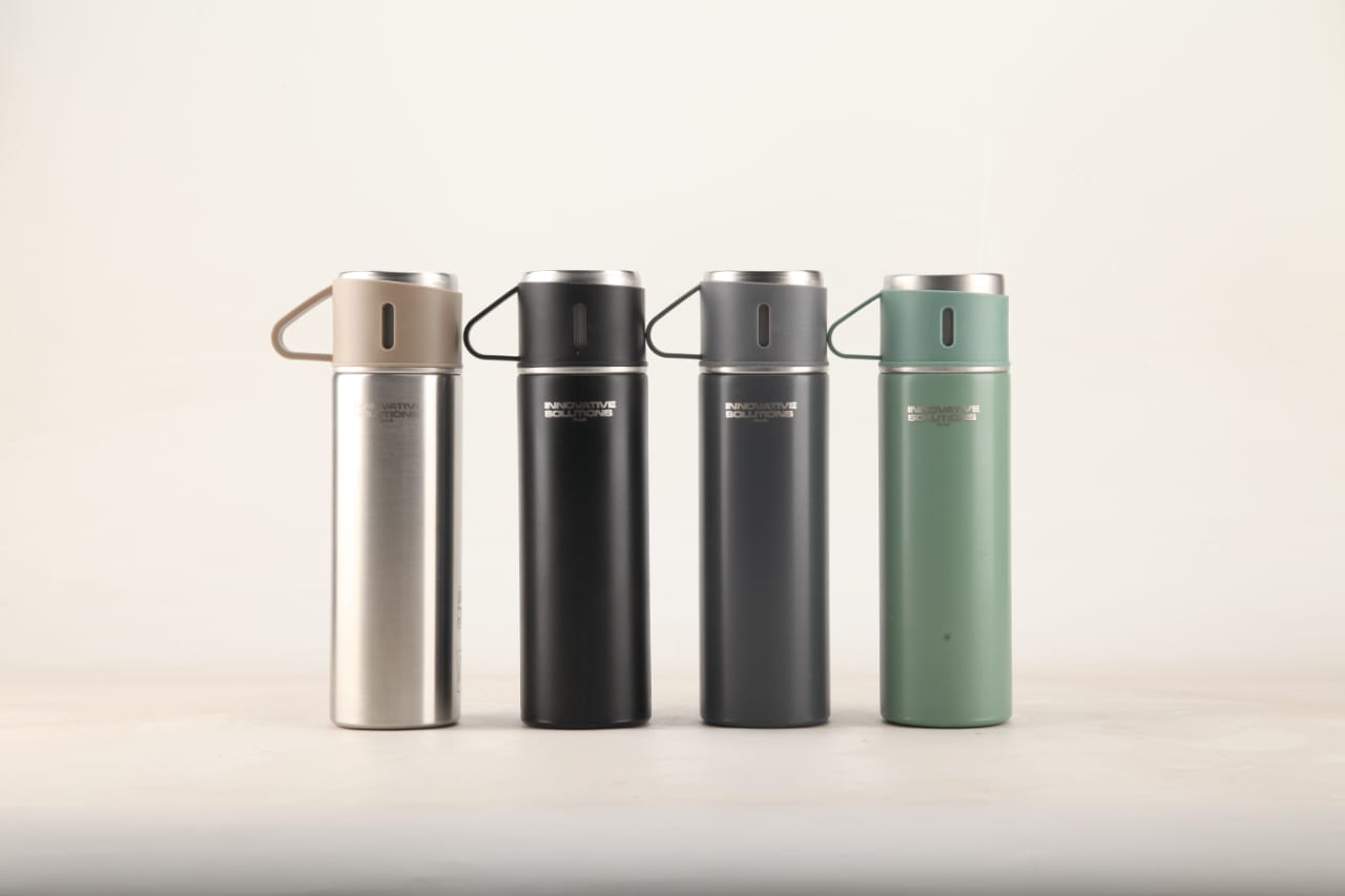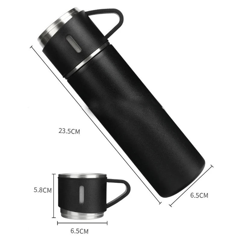 Eco friendly Stainless Steel 500ml/ 16.9oz infused 304 stainless steel vacuum thermos insulated water bottle 3 cups for Coffee, Hot Drink and Cold Drink Water Flask with Free Brush