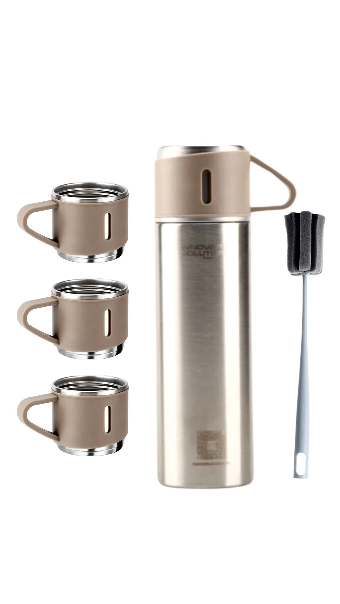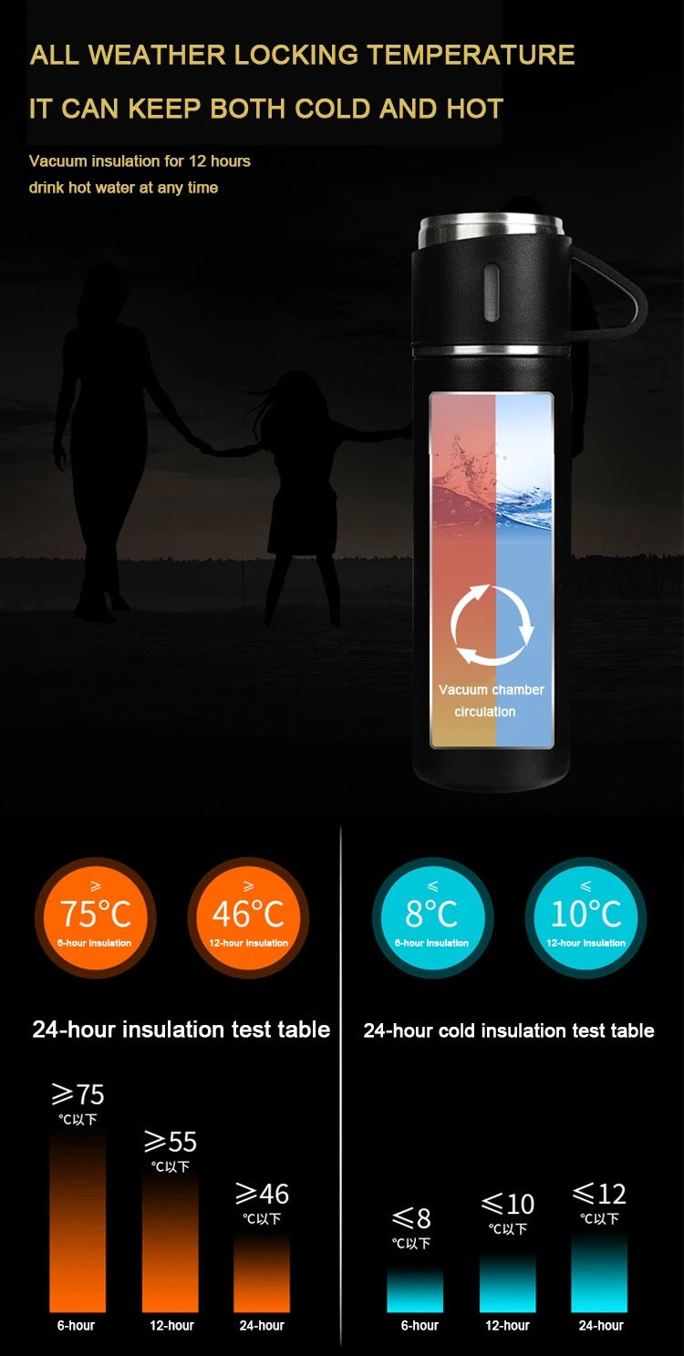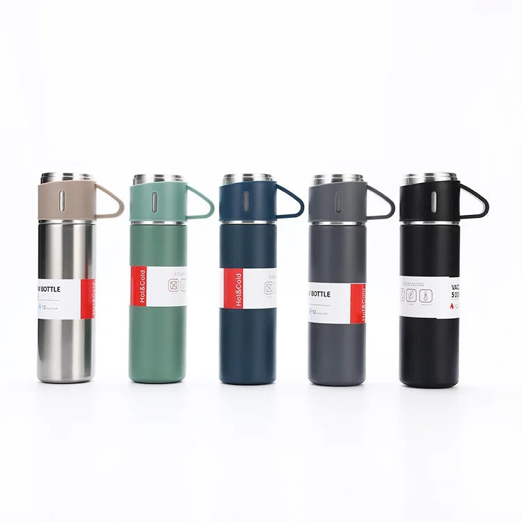 Stay hydrated and help the environment with our Eco-Friendly Stainless Steel Water Bottle. Made from 304 stainless steel and featuring vacuum insulation, this 500ml/16.9oz bottle keeps your drinks hot or cold for longer. Plus, it comes with 3 cups for easy sharing and a free brush for convenient cleaning.