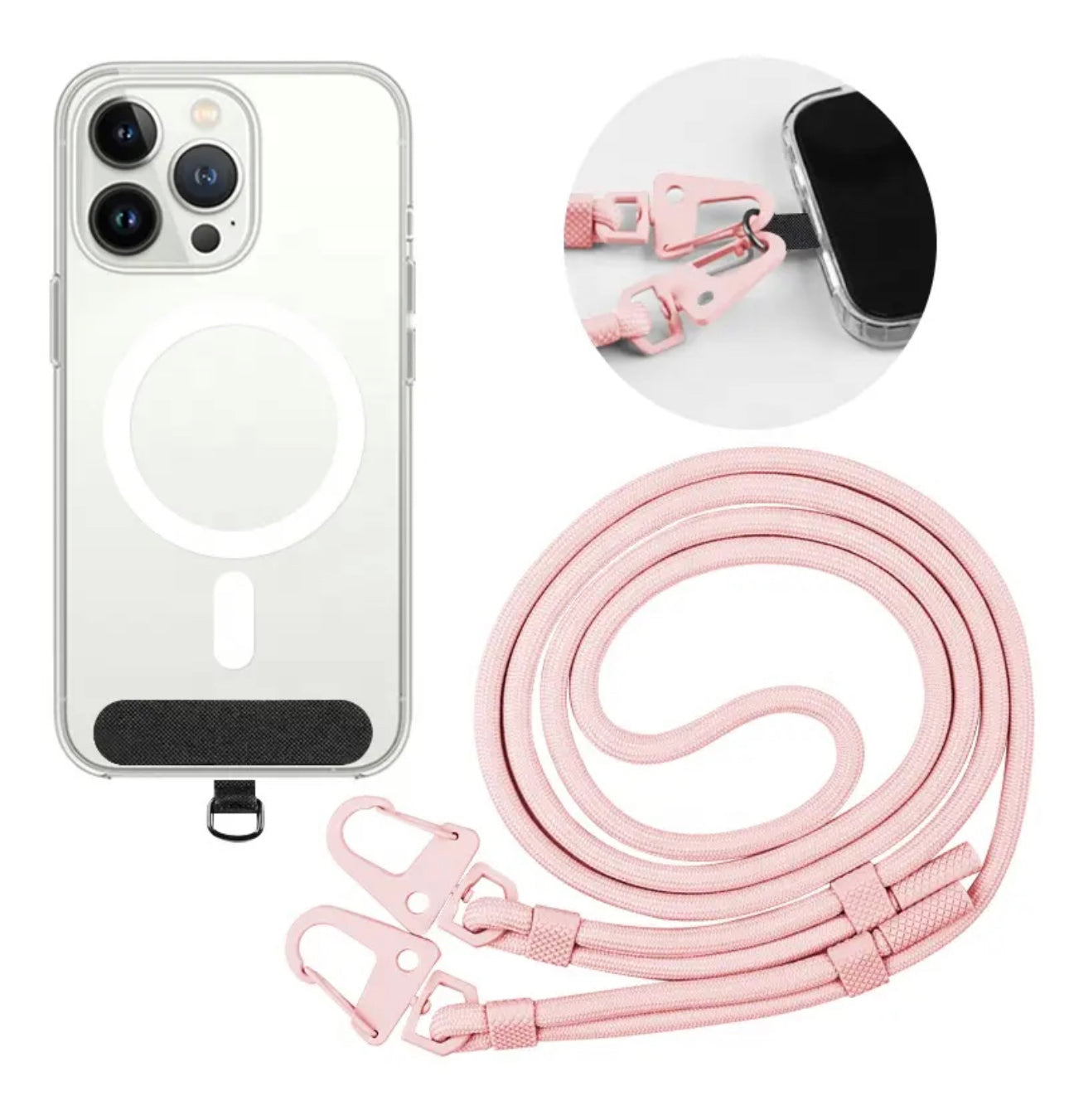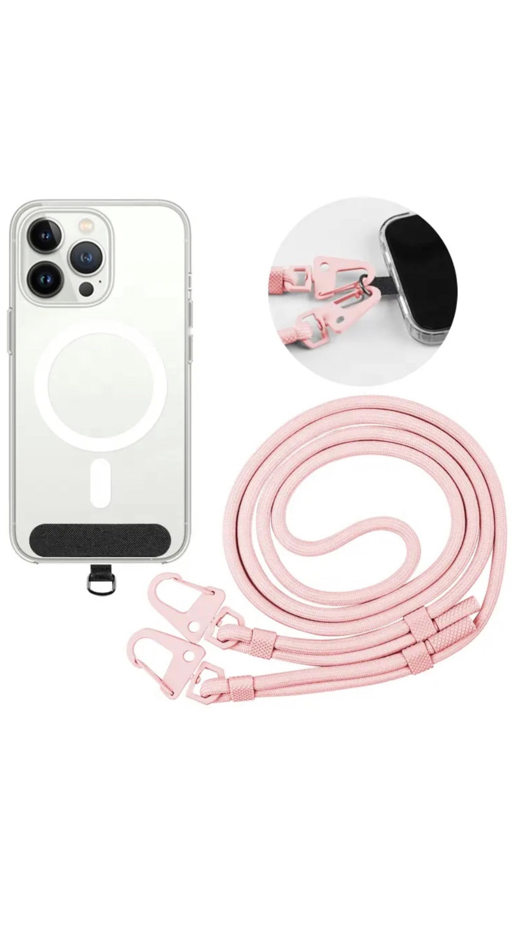 Introducing the Innovative Cell Phone Lanyard, your convenient and comfortable solution for holding your iPhone hands-free. With an easy to use neck phone holder and adjustable length strap, you can keep your phone close and secure on the go. Comes in a stylish beige color to match any outfit. Fits all mobile phones for added versatility.