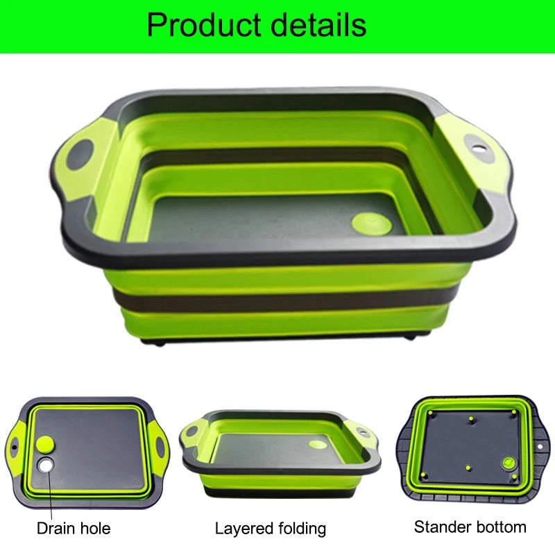 Boost your kitchen efficiency with the INNOVATIVE Cutting Board Collapsible Board. Transform your food prep experience with its 3-in-1 design featuring a knife, towel, and foldable drainer. Save space and simplify your kitchen tasks with this multifunctional cutting board.