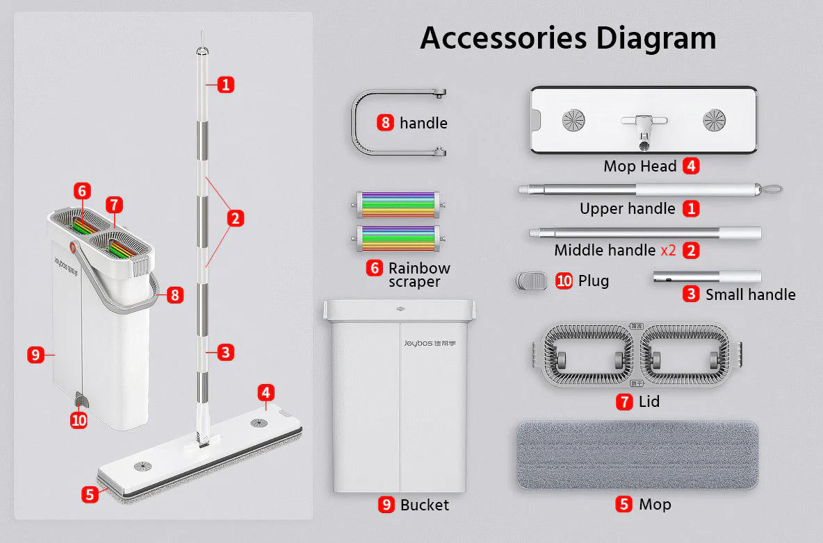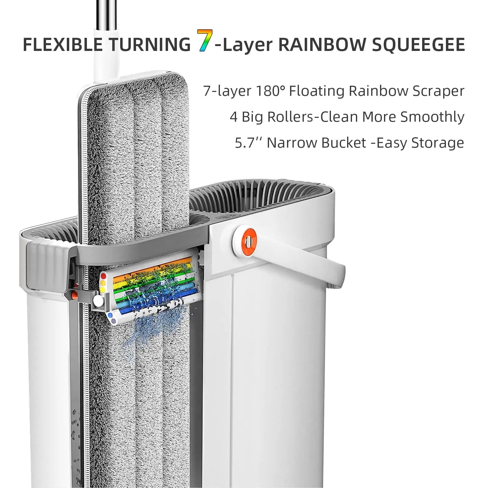 EFFICIENT CLEANING: Self-cleaning mop, SAVE your time and labour, let the bucket do more than by yourself, mopping is just between mop and bucket, be free from dirty water, All you need to do is inserting and pulling the mop.