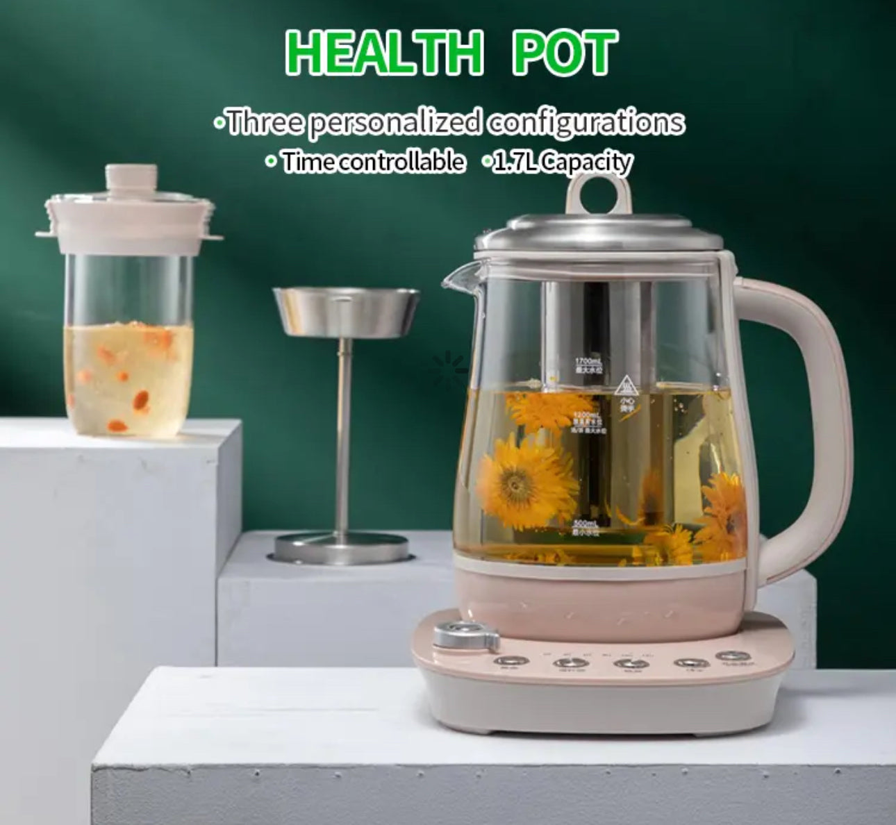 INNOVATIVE V1 Health Pot, Electric Kettle Tea Maker with Infuser, Borosilicate Glass Kettle & Stew Pot 1.7L 220V