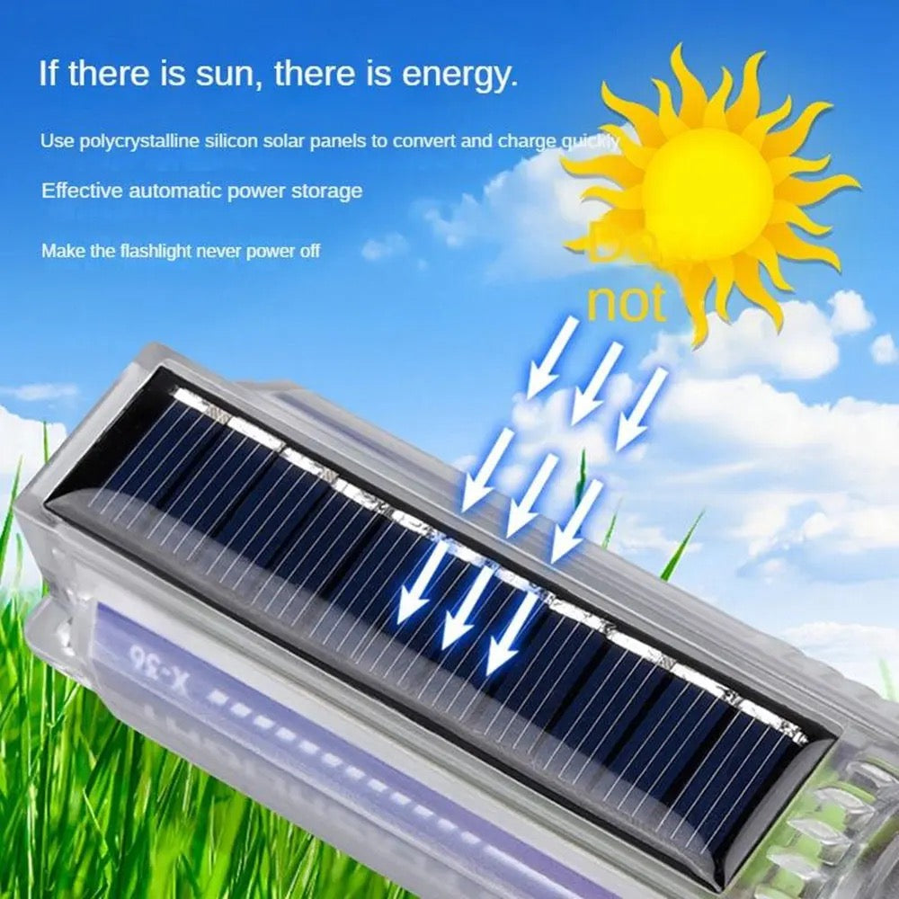 ISP Rechargeable Waterproof Solar Powered Flashlight Super Bright Tactical Patriot Torch Emergency Flashlights, Zoom & Emergency Light