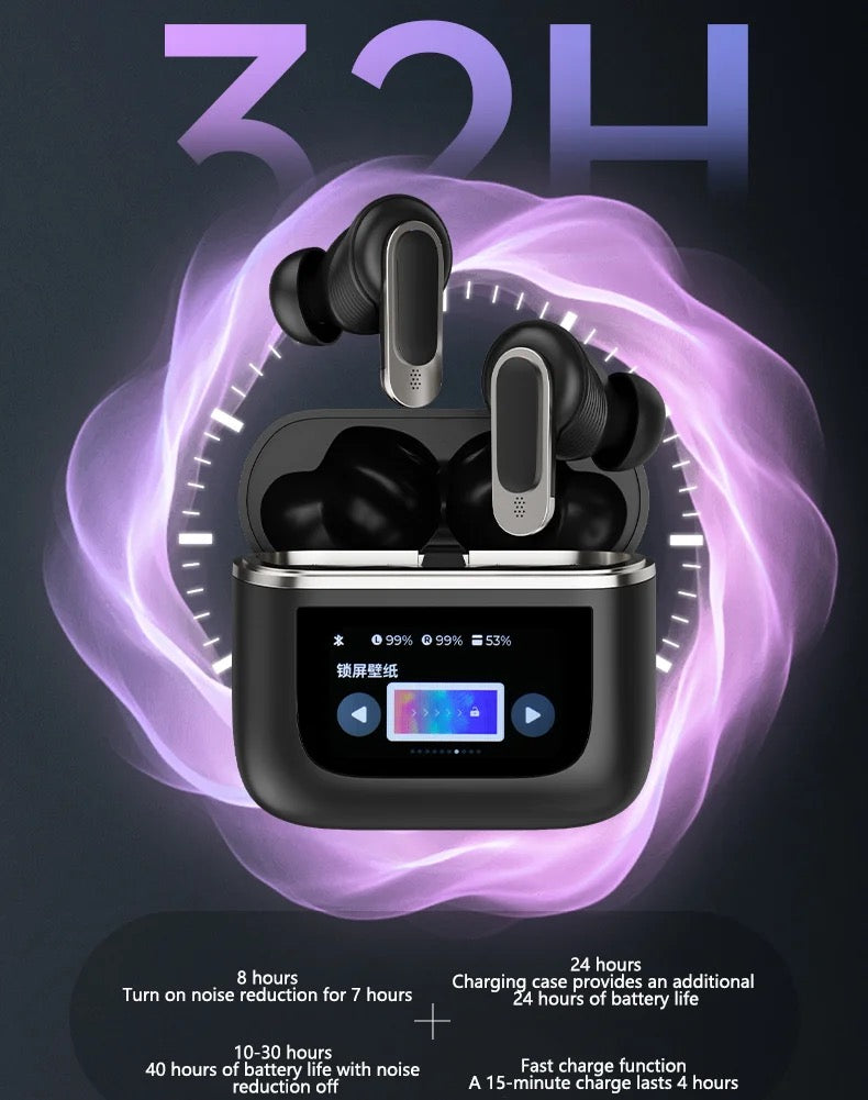 Experience crystal clear sound and immersive music with ISP Smart Earphones. Featuring an LCD touch screen and wireless capabilities, these headphones provide ultimate convenience. With active noise cancellation, enjoy your music without any distractions. HD microphone ensures clear calls on all smartphones. Upgrade your audio experience with ISP Smart Earphones. 26 languages