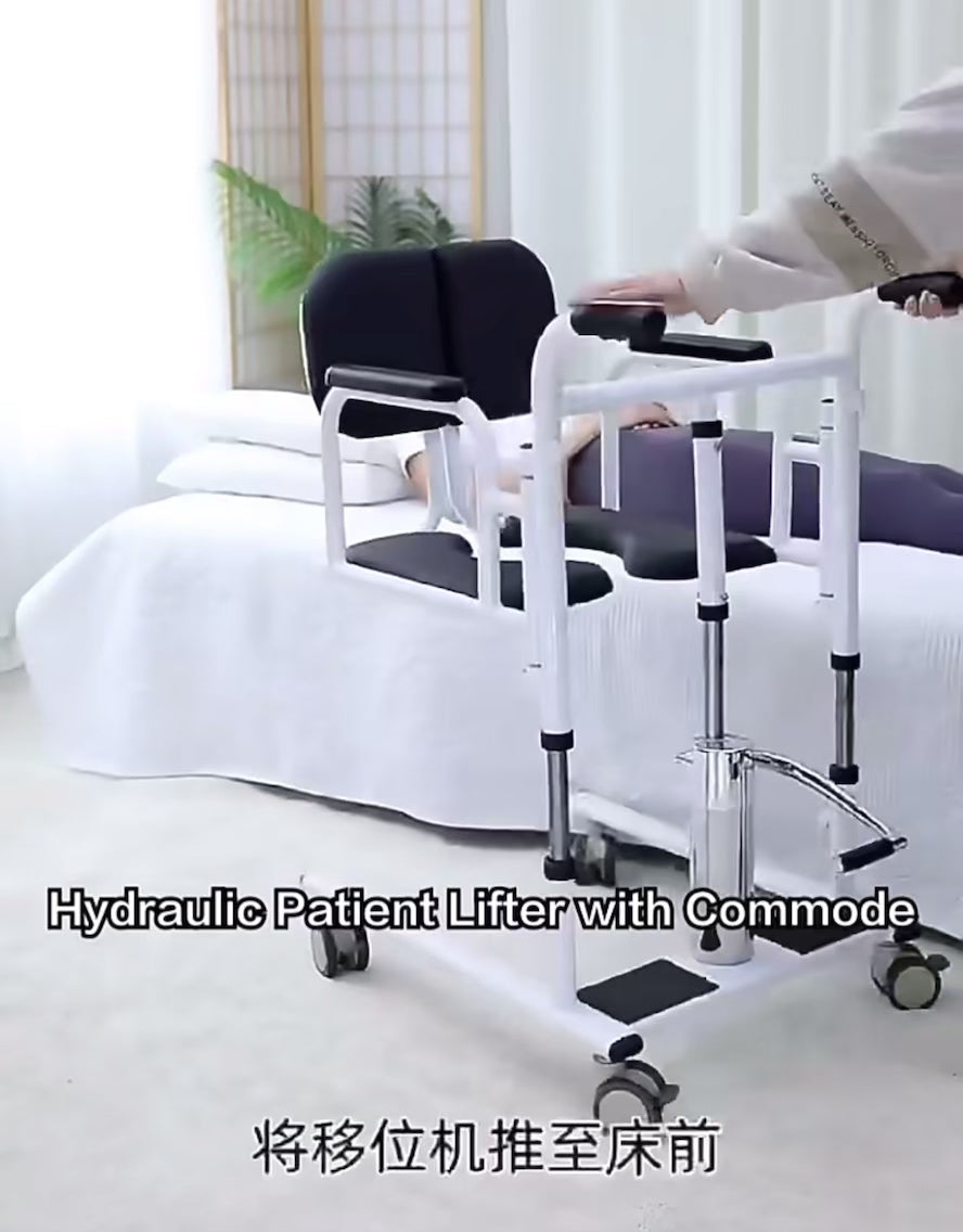 Patient Lift Transfer Machine for Home & Hospital with 180 degrees , Split Seat . Nursing Lift Wheelchair with Toilet and Tray Table